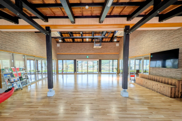 鏡野町のビジターセンターには、アクティビティ受付やツアーデスクをはじめ、更衣室・シャワー・多目的ルームなどの設備が整い、快適なアウトドア体験をサポートします。併設の「KAGAMINO Foods&Goods COHAN」では、町産のお米やフルーツ、ひらめ(あまご)、松きのこなどを使ったフード&ドリンクが楽しめ、特産品やお土産も購入可能です。さらに、美しい水と緑に囲まれた奥津湖を望む湖畔デッキ&芝生広場では、奥津湖や苫田大橋を眺めながら、心地よいそよ風とともにゆったりとした時間を過ごせます。