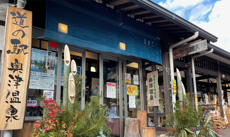 奥津温泉街の高台にある道の駅。鏡野町の特産品「ひめとうがらし」をはじめとした鏡野町のお土産が並ぶ。