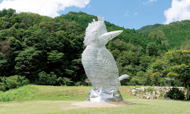 旧商工会館をリノベーションしたモダンな雰囲気の施設でカレーや定食が楽しめる。昨年度初開催された「森の芸術祭 晴れの国・岡山」の際に作られ恒常設置されている「山に響くこだま」は高さ6.5mの巨大彫刻で自然に佇む姿は圧巻。