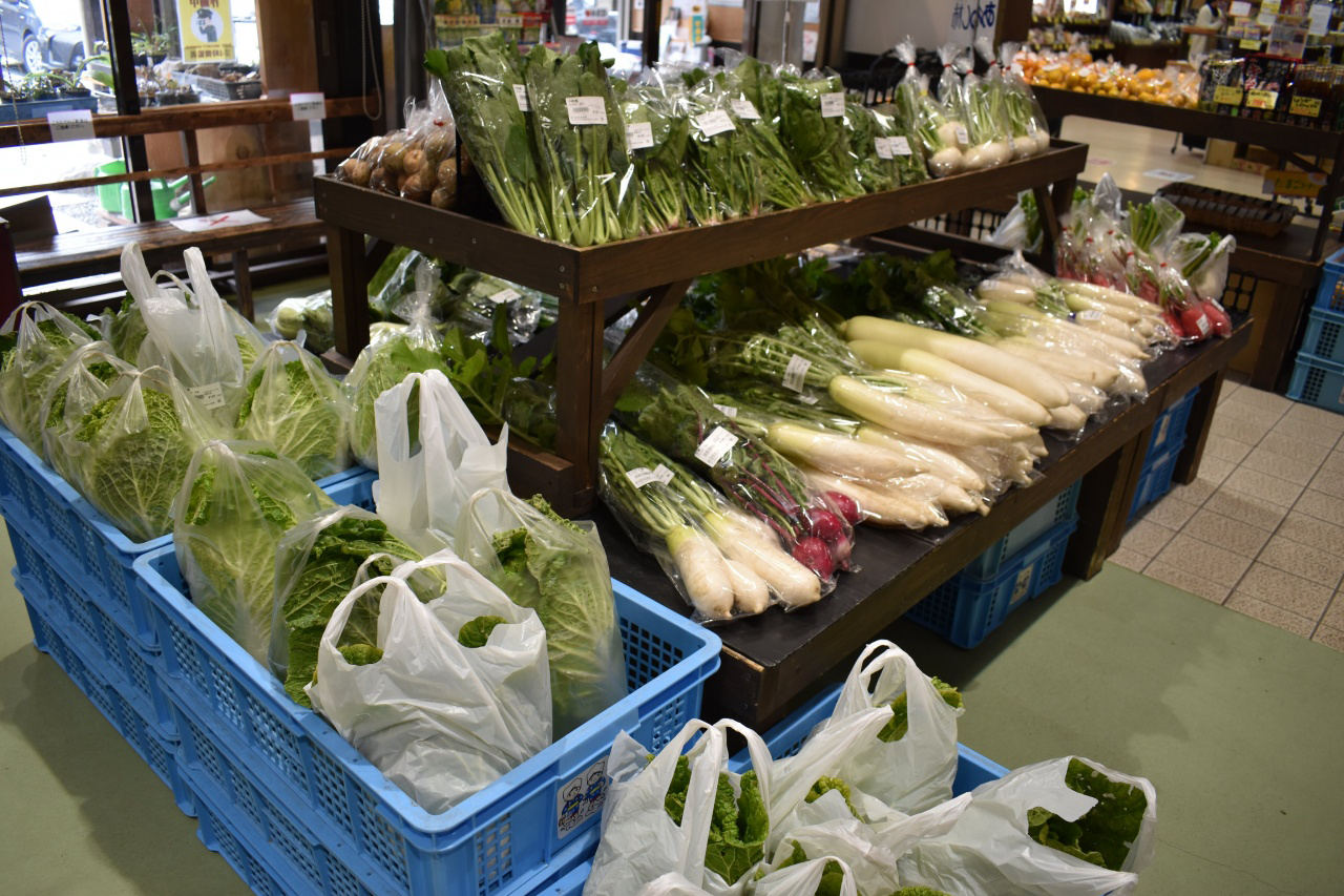 国道179号線沿いの奥津温泉街にほど近い山里にあり、地元生産者の採れたて野菜や山菜、特産品の数々が展示即売されます。