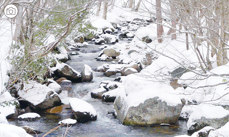 冬だからこそ出会える渓谷の雪景色。撮影スポットとしてもおすすめ。