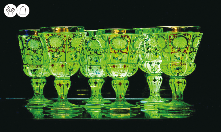 世界的にも珍しいウランガラスを展示する美術館。19世紀のボヘミアガラスの名品から現代にいたる様々なガラス作品が鑑賞できるほか、ガラス工房では、吹きガラス体験やサンドブラスト体験、リューター体験ができます(体験は人数限定)。妖精の森ガラスとは、人形峠産の微量のウランを着色のために使用している唯一の国内産ウランガラスのこと。妖精の森ガラスは年間に作られる量が決まっており、希少価値の高い限定ガラス製品として人気を集め、館内のアートショップではアクセサリーやグラスなど、ココにしかないオリジナルのガラス製品をお買い求めいただけます。
