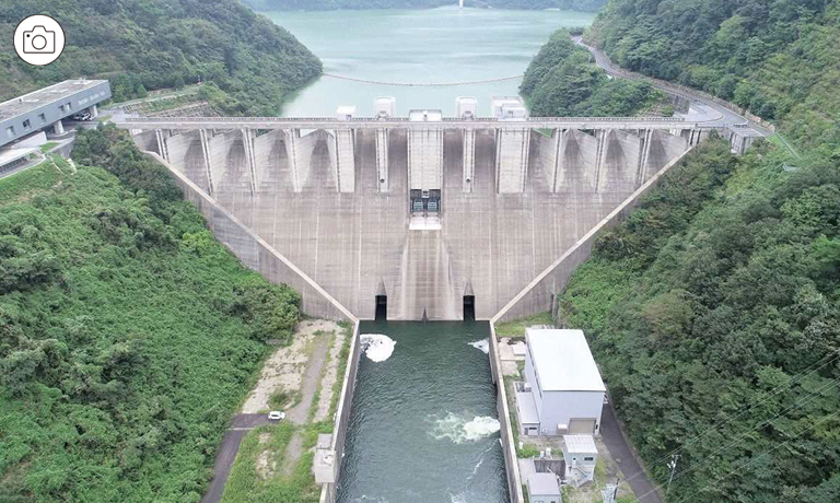 日本初のラビリンス構造を採用したアートなダムで、堤体内の放流設備を無料で観覧できる。