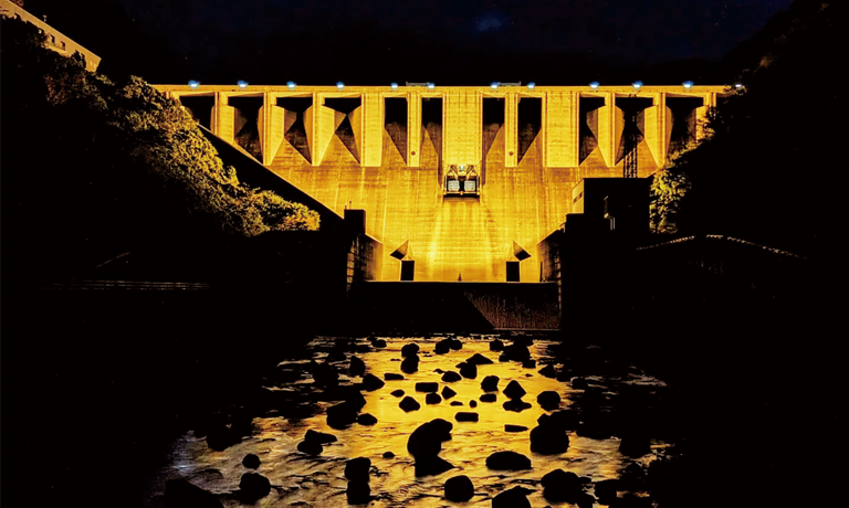 苫田ダムは鏡野町(旧奥津町)に平成17年3月に完成したダムで、岡山県内では3番目の貯水量を誇り、コンクリートの重さで水圧に耐える重力式コンクリート型式のダムです。国内初のラビリンス型(ジグザグ型)の非常用洪水吐を備えた美しいフォルムのダムで、ガラス張りの見学室からは放流も見ることができます。一般開放も行っているためご自由に見学して頂けます♪管理所では、人気急上昇中のダムカードももらえます!