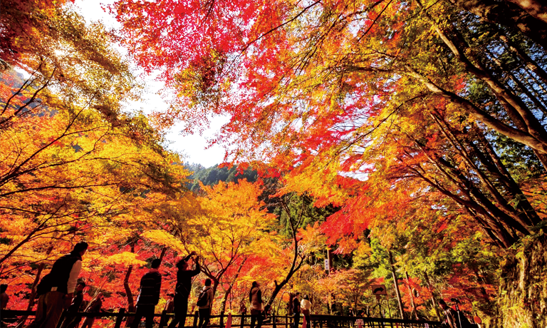 秋は真っ赤なモミジやブナ・カエデを始めとした紅葉の絶景が広がり、四季を通じて風情に富んだ素晴らしい渓谷美を楽しむことができます。