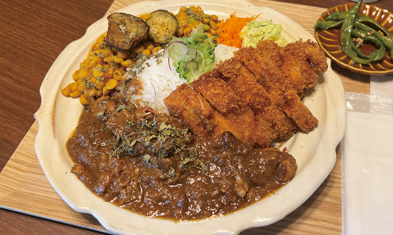旧商工会館をリノベーションしたモダンな雰囲気の中でスパイスカレーや定食が楽しめる。