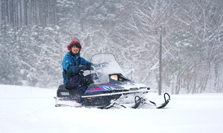 関西以西で唯一のスノーモビルフィールドでアクティビティーを楽しむ